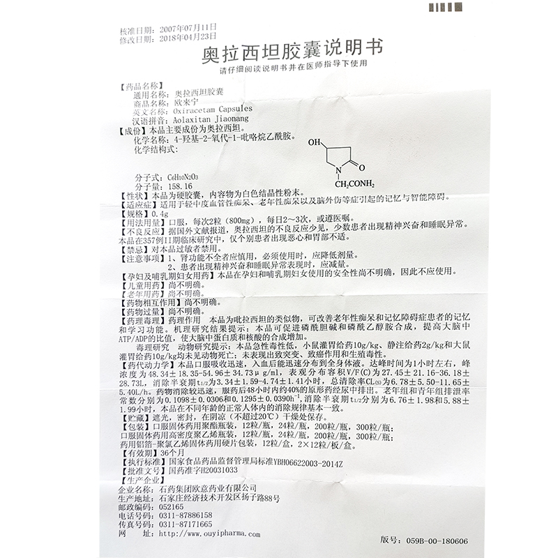 CSPC/石药集团 欧来宁 奥拉西坦胶囊 0.4g*24粒/盒