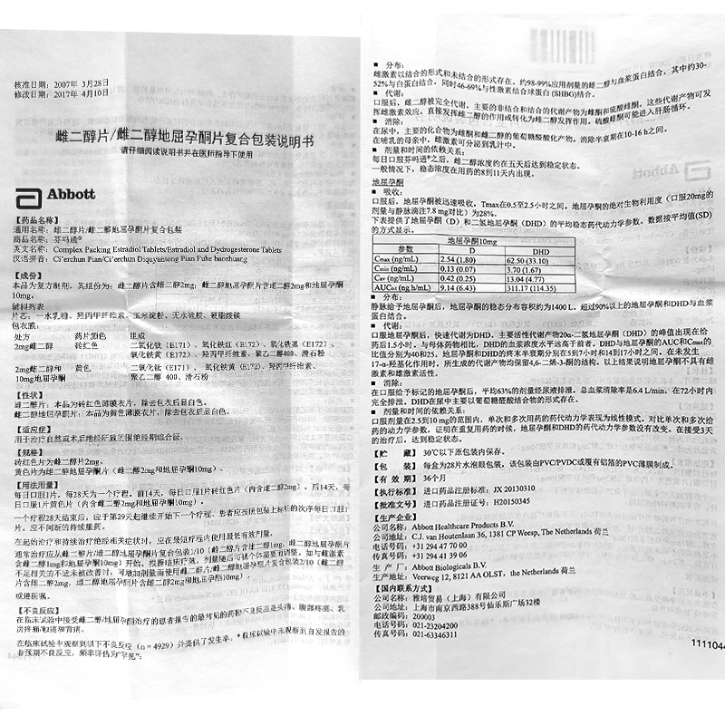 芬吗通 雌二醇片/雌二醇地屈孕酮片复合包装 2mg:2mg:10mg*28片/盒