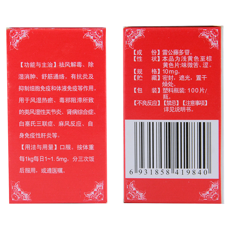 首页>全部商品>专科用药>风湿关节>风湿骨痛>双鹿雷公藤多苷片100片